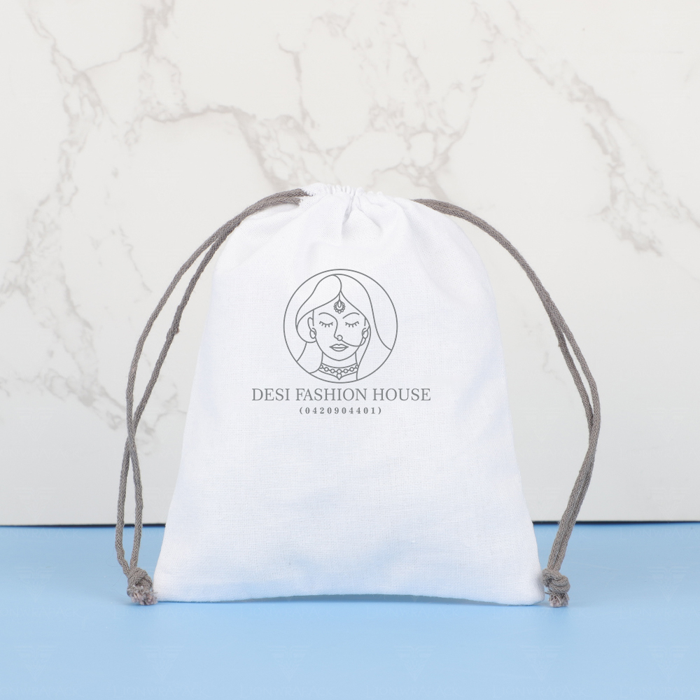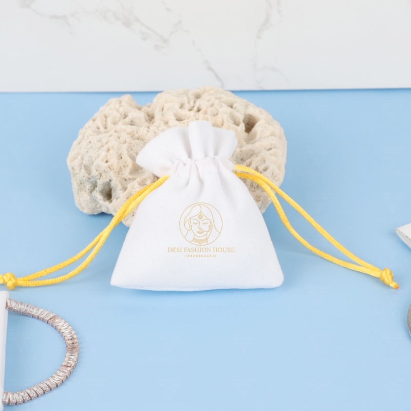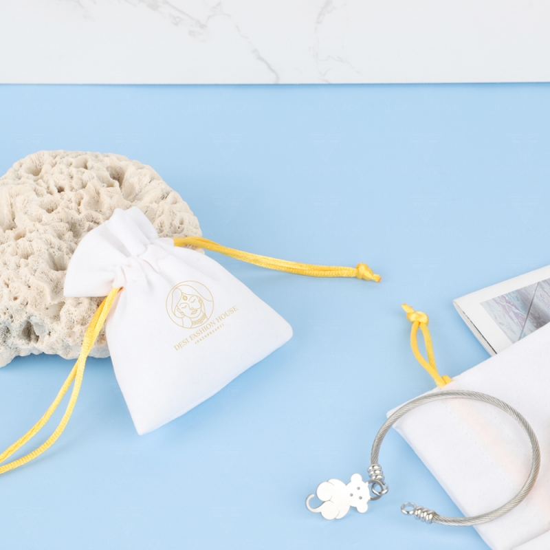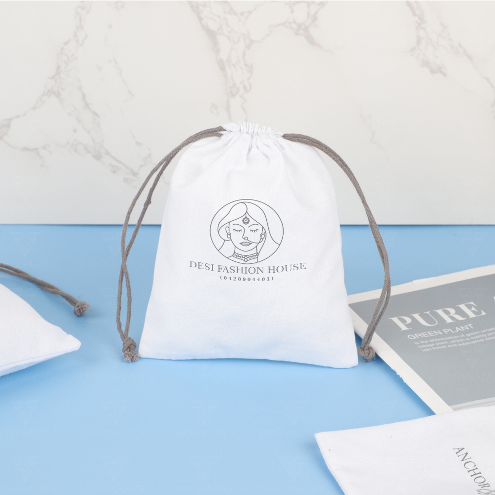 Custom Logo drawstring cosmetic Gift Pouch with Luxury Twill Cotton Jewelry Packaging Bag